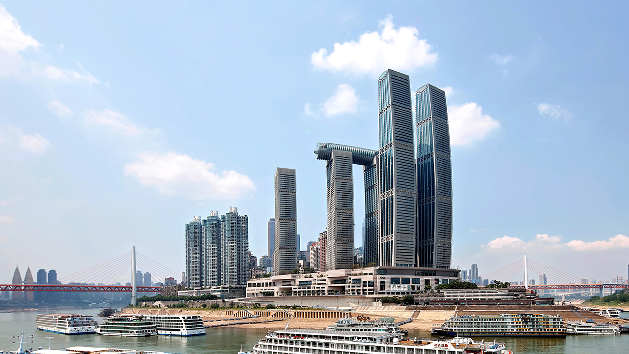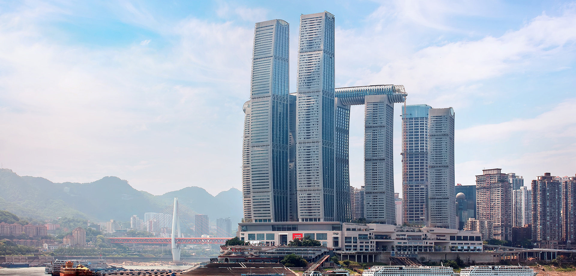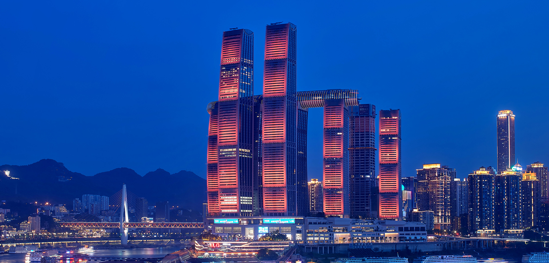 建筑高度:250 m(56层) 幕墙面积:15.3万m² 项目设计:萨夫迪建筑设计事务所、重庆市设计院 幕墙类型:新型单元式幕墙、石材幕墙 、金属板幕墙等