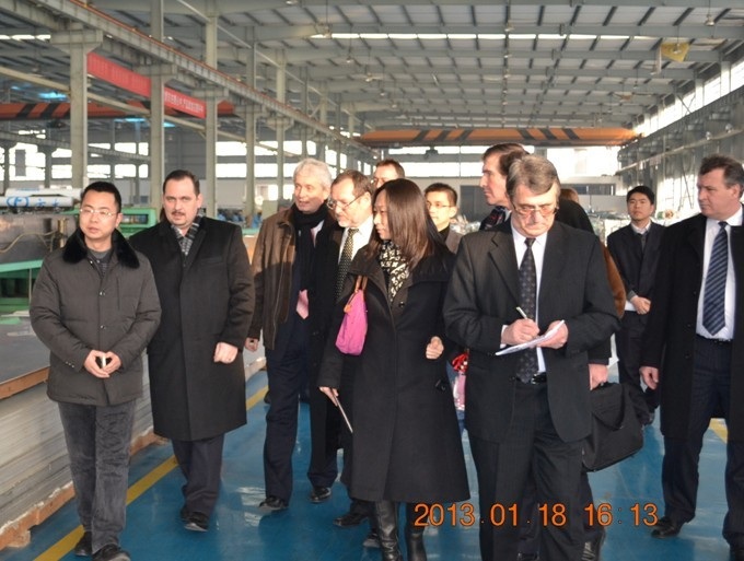 方大新材料(江西)有限公司总经理唐昱对考察团的到来表示热烈欢迎,并陪同考察团到生产现场等进行参观考察。唐昱总经理向来宾介绍了公司的基本情况和行业发展现状。罗兰·孟伊一行对方大铝板在技术水平、产品质量、品牌影响和市场竞争力等方面的综合优势表示赞赏。双方还就共同感兴趣的话题进行了探讨。