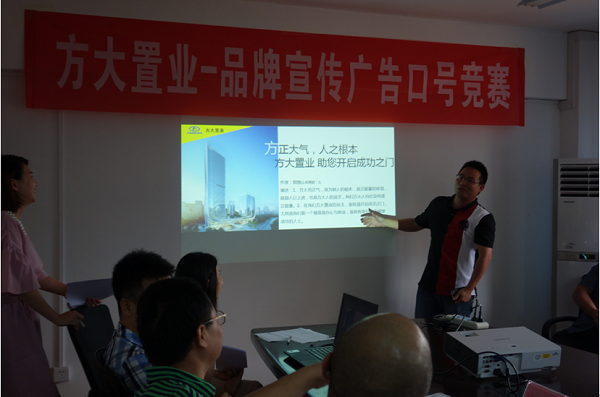 7月16日,方大置业“品牌宣传广告语口号竞赛”活动决赛在方大广场综合楼三楼会议室举行。经过三周时间的征稿、作品展示、初选、复选,最终选出了十篇优秀作品进入决赛。方大置业总经理及相关领导、办公室和营销策划部负责人担当本次决赛评委。