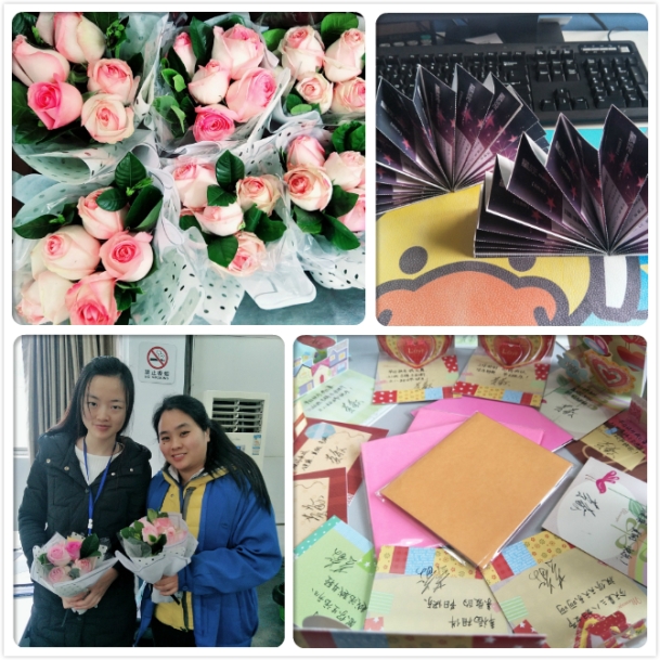 在南昌,为肯定和感谢全体女员工们一直以来的辛劳工作和默默奉献,江西新材准备了神秘惊喜:有浪漫的电影票、美丽芬芳的花束,还有总经理黄敬一一签名的祝福贺卡,为全体女员工送上节日的问候。
