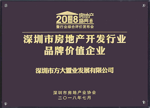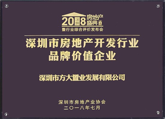 7月10日,第八届深圳房地产盛典暨行业综合评价发布会举行,公布了2018综合评价结果,方大置业公司获评“深圳市房地产开发行业品牌价值企业”。