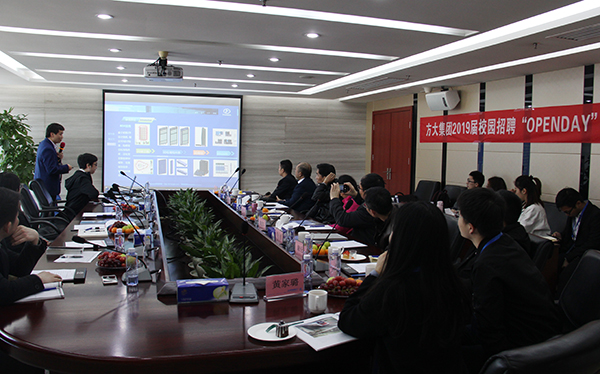 方大集团人力资源部副部长贾松涛,方大建科设计院院长文林、人力资源部经理关鑫介绍了方大集团的基本情况、幕墙产业以及未来发展远景,并希望通过“OPENDAY”活动让各大高校教师对方大集团有全新的认识,拉近与各大高校的距离。