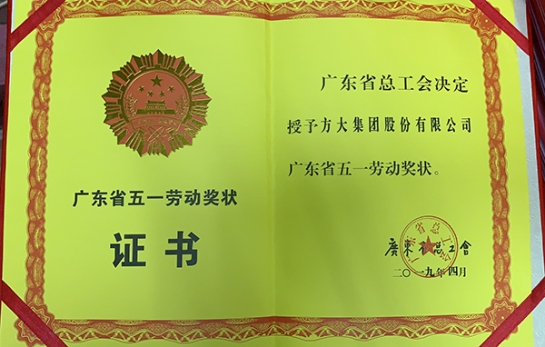 在五一国际劳动节到来之际,荣获“广东省五一劳动奖状”称号,是方大集团的至高荣誉,也是在劳动节之际献给全体方大人的最美赞歌,愿我们再接再厉,不忘初心、牢记使命,继续做新时代的奋斗者。在此,祝愿奋斗在全球各地的方大员工五一劳动节快乐。
