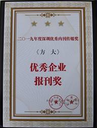 近日,2019年度深圳内刊界“深圳优秀内刊传媒奖”评选结果出炉,方大集团企业刊物《方大》被评为“优秀企业报刊奖”。