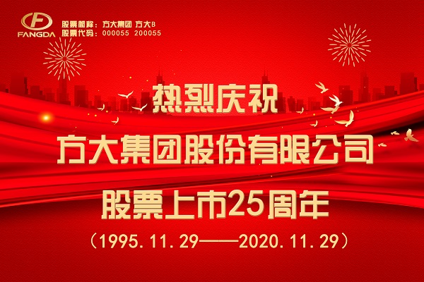 1995年11月29日,方大集团B股股票(SZ200055)在深圳证券交易所主板挂牌上市,1996年4月15日,方大集团A股股票(SZ000055)在深圳证券交易所主板挂牌上市,开启了方大集团发展新的征程。时光流转,日月穿梭。从上市到今天的25年里,方大集团乘着登陆资本市场的东风,谱写了追求卓越、阔步发展的宏伟篇章。